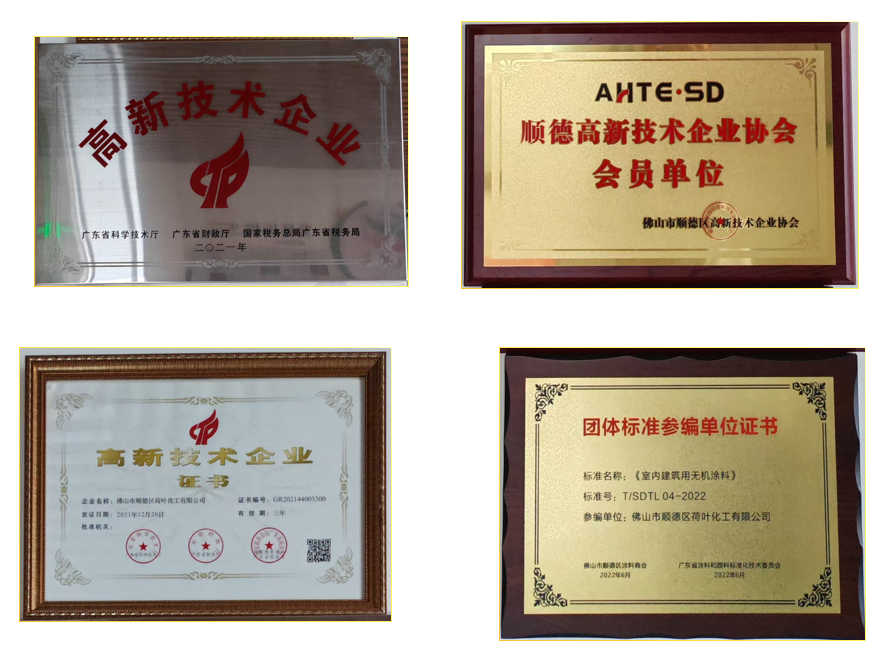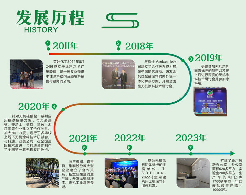 荷叶化工成立于2011年,生产基地位于广东顺德,是集研发、生产、销售和技术服务为一体的专业无机涂料原料生产商,提供专业的无机地坪与无机内外墙漆解决方案。与三棵树、嘉宝莉、美涂士等国内多家大型涂料企业建立了牢固的合作关系,2018年成为瑞士vanBaerle的代理商。 我司参编《室内建筑用无机涂料团标》T/SDTL04-2022。